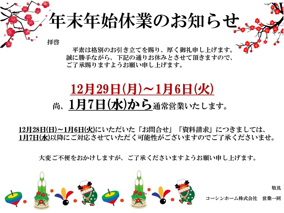 - 年末年始休暇のお知らせ